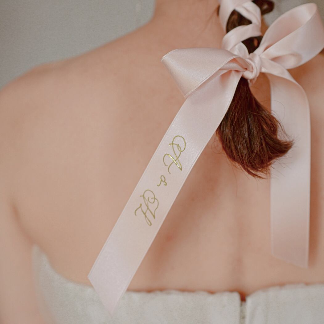 ※ボブヘアなどでリボンが長く感じる場合は、名入れをしていない側をお好みの長さにカットしてご使用ください。