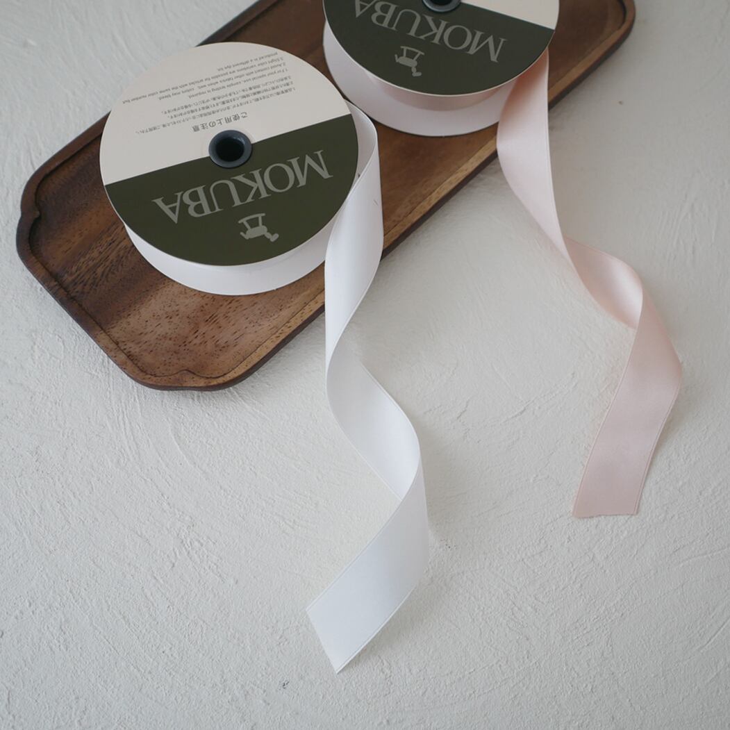 LIBRAの陶のヘアカフスシリーズの中で最も大きなモチーフ「vanilla」と、上質なダブルフェイスサテンリボンを組み合わせました。